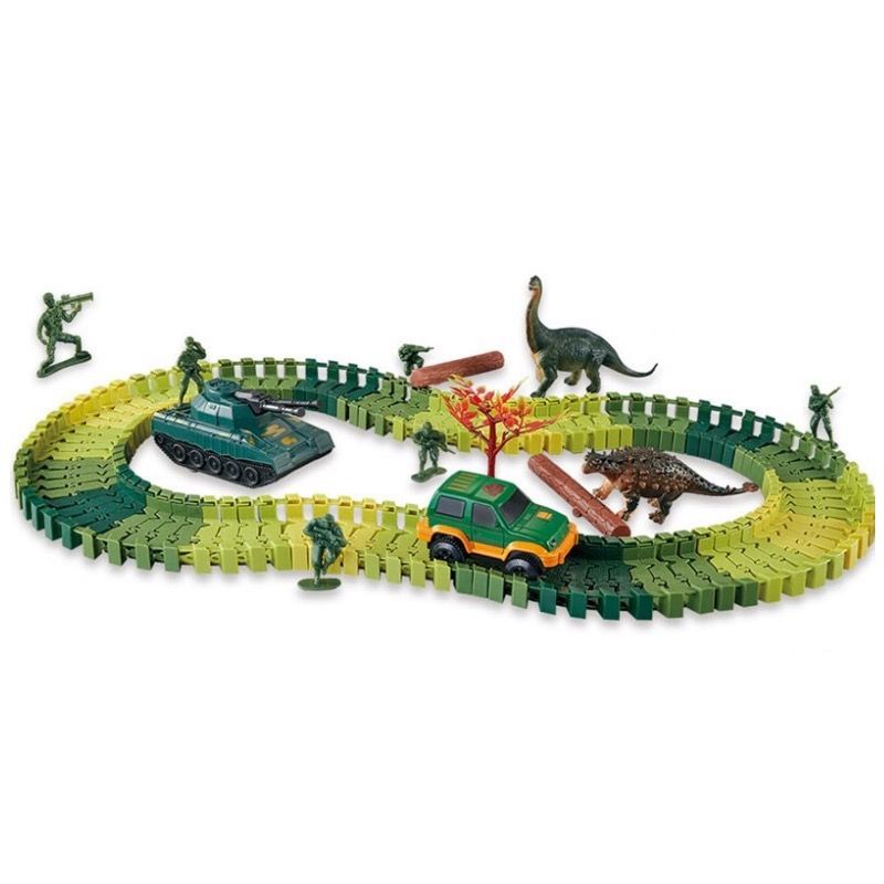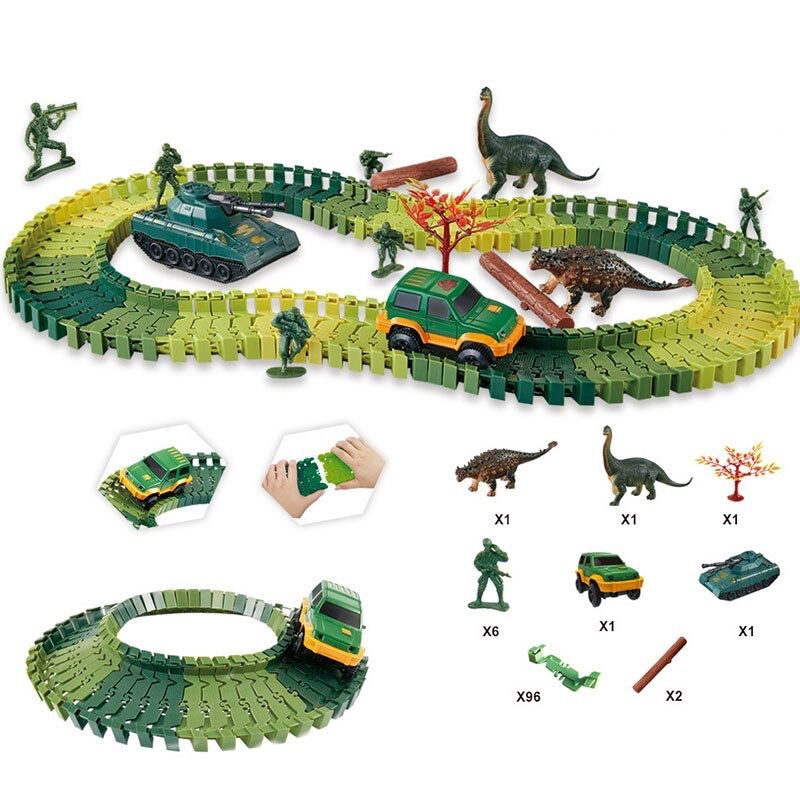 109-Piece DIY Dinosaur Railcar and Track Slot Car Kit - Toys for Boys