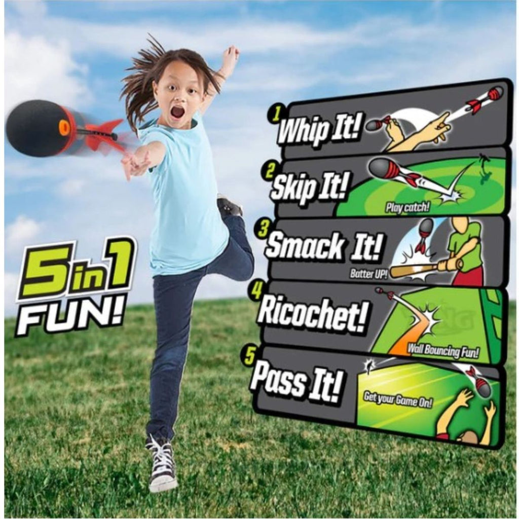 Picture yourself in an epic game of catch, throwing the Zooperball further than you ever imagined. It's a long-distance bounce & throw ball that'll have you cheering for every breathtaking flight that spans over 200 feet! With 5-in-1 action play, the Zooperball doesn't just stop at bouncing. Whip it for maximum distance, skip it for unbeatable speed, smack it to defy gravity, ricochet it off surfaces, or pass it like a pro. Safety is key, and the Zooperball delivers with a rubber foam-tipped head, fins, and a soft foam body. It's built for longer throws and worry-free play. Plus, the embedded whistle adds an extra dimension of excitement as the Zooperball screams toward your target.