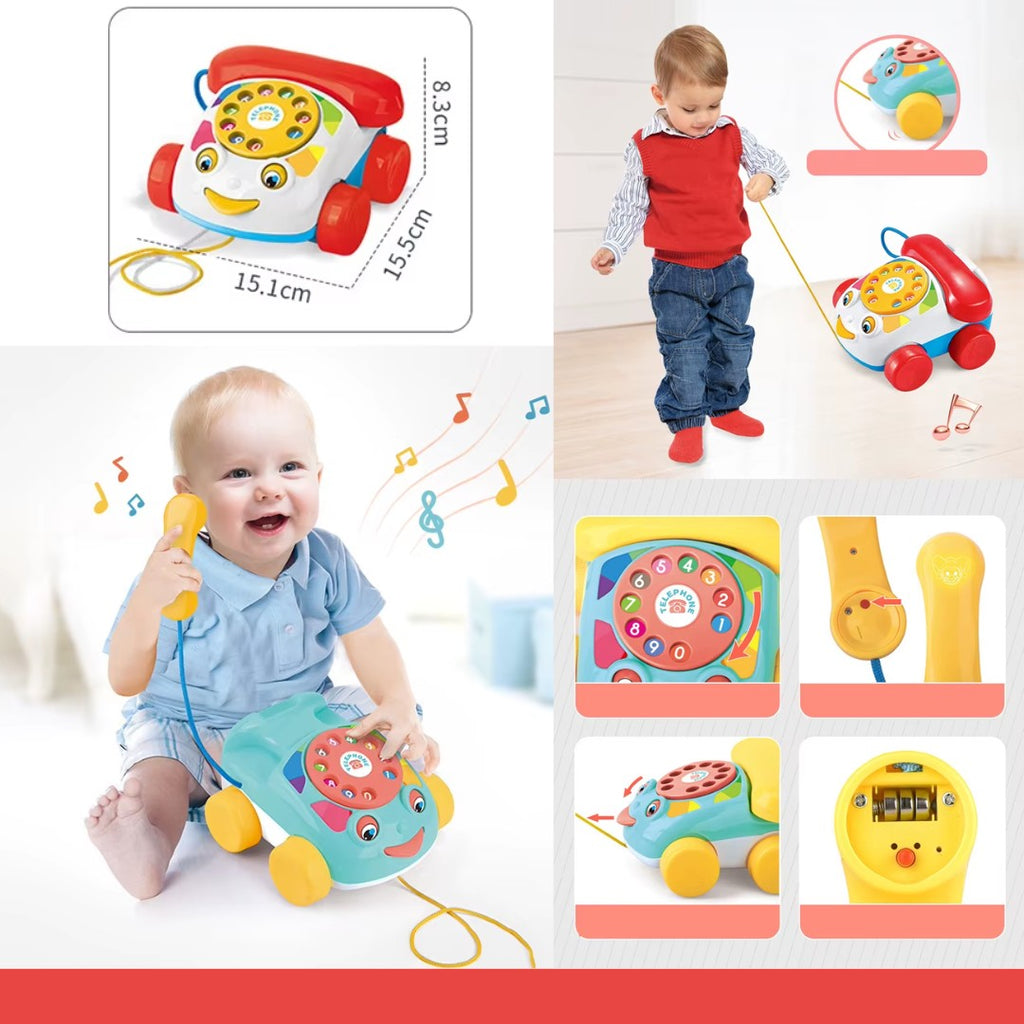 • Walk-along Telephone: Classic pull toy with spinning dial and rolling eyes